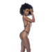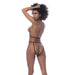 Pair this with a chic outfit or wear it directly on your bare skin. You will feel your sexiest with this two-piece rose gold chain set. Includes top and open back panty.