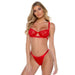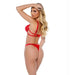 Experience the allure of our exclusive Playboy Rouge Bunny 2-Piece Set in vibrant red with a sensually plunging underwire bra and elastic mesh thong, adorned with a striking flocked bunny print. Elevate your lingerie collection with this stunning and irresistible ensemble.