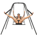 The chair hangs via chains from the easy to assemble frame. Stirrups are included and allow you to elevate your legs or grab on with your hands, depending on your position. Fully adjust the height so your partner can enjoy ergonomic penetration and play! Adjust the angle of the chair from 90 degrees to 180 degrees to go from sitting up to laying back and find which angle gives you the perfect angle to hit your A-spot, G-spot or P-spot! The comfortable, padded chair is covered with vegan friendly, easy to clean, PU leather.