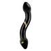 This elegant black and gold 7.5 inch curvy beauty can be used for stimulation with a partner or during solo play.