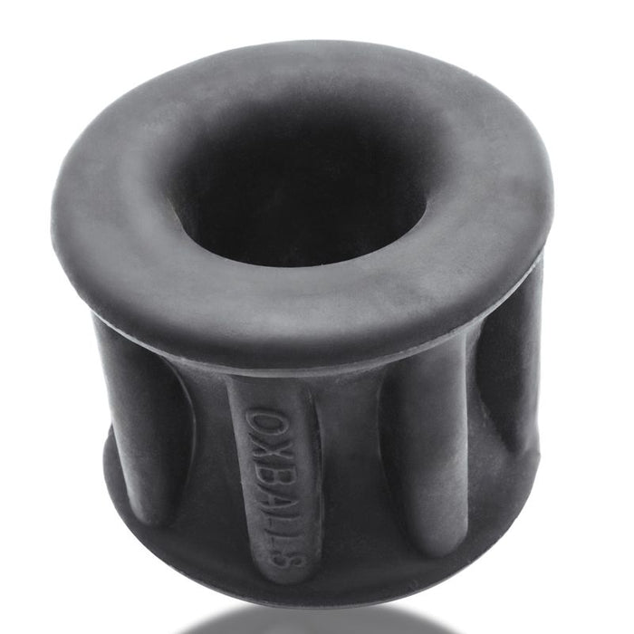 OXBALLS BALLER rib-stretch NIGHT EDITION max-tall ball stretcherin our lush rubbery SILSOFT SILICONE blend and a smooth,velvet-black color. This is a softer, squishier formula forthe hardest and darkest of play.BALLER soft stretchy blubbery hourglass-curving ballstretcher with eight super-stretch outer ribs for max push-down stretch, ataller ballstretcher for lower-hanging sacks—the rubbery ribs keep the squeeze down-low, so itfeels like grippy tugging thelength of your sack.