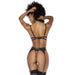 This sexy black three-piece set includes a bra with underwire, adjustable straps, garter belt and a matching thong. The bra has an underboob design for an extra sexy element.