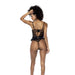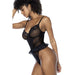 Mapale Bodysuit w/ Lace Ruffles, Black, S/M, L/XL