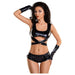 This stunning set features a shiny Wetlook material that will make you stand out in any room. With included top, gloves, and mini-shorts, you'll have the perfect outfit for any occasion. Elevate your style with this must-have set!